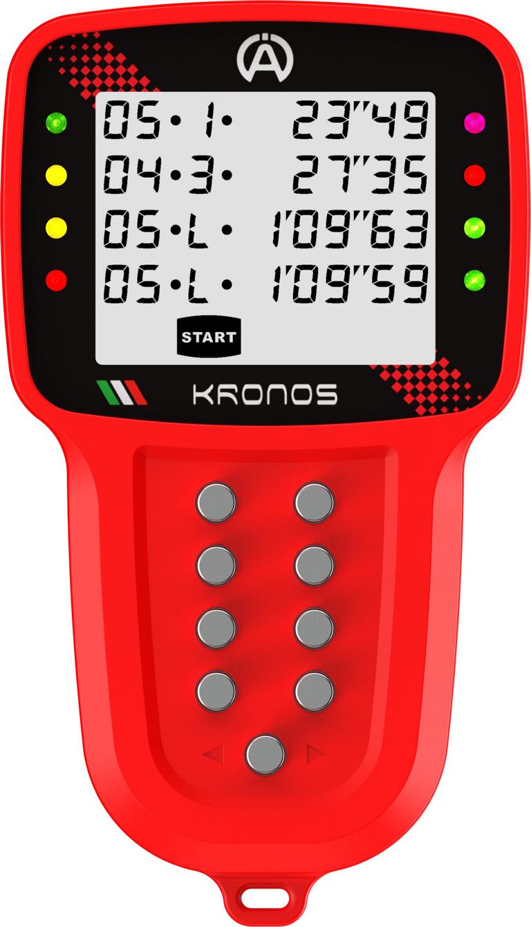 Mit der neuen Kronos Stopuhr können Sie die Rundenzeiten der Fahrer schnell analysieren, nicht nur durch die Daten auf dem Bildschirm, sondern auch durch das System aus 8 LED's mit hoher Helligkeit, die die Leistung der Fahrer schnell visuell kommunizieren. Mit der Kronos können Sie alle Runden der Ausfahrt und die dazugehörigen Zwischenzeiten, die schnellste Runde, die theoretische Runde und die Rolling Runde jedes Fahrers analysieren. Darüber hinaus ist die neue Kronos mit Bluetooth-Technologie ausgestattet, die die Kommunikation mit der Alfano App ermöglicht. So können Sie Daten speichern und sie präzise und direkt von Ihrem Smartphone oder Tablet aus analysieren.